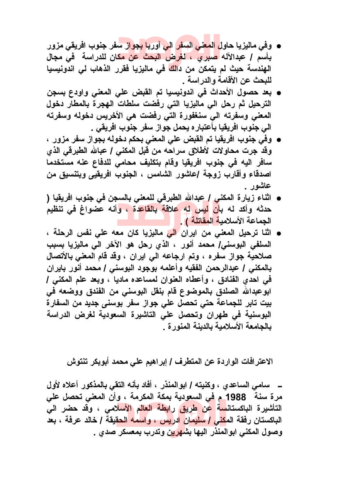 وفى مايلي تنشر صحيفة المرصد وثائق أرشيفية من جهاز الأمن الداخلي تُنشر ولأول مرة عن إعترافات أدلى بها قادة الجماعة الليبية المقاتلة ضد تنتوش بعد ترحيلهم إلى ليبيا من الخارج أو القبض عليهم فيها :