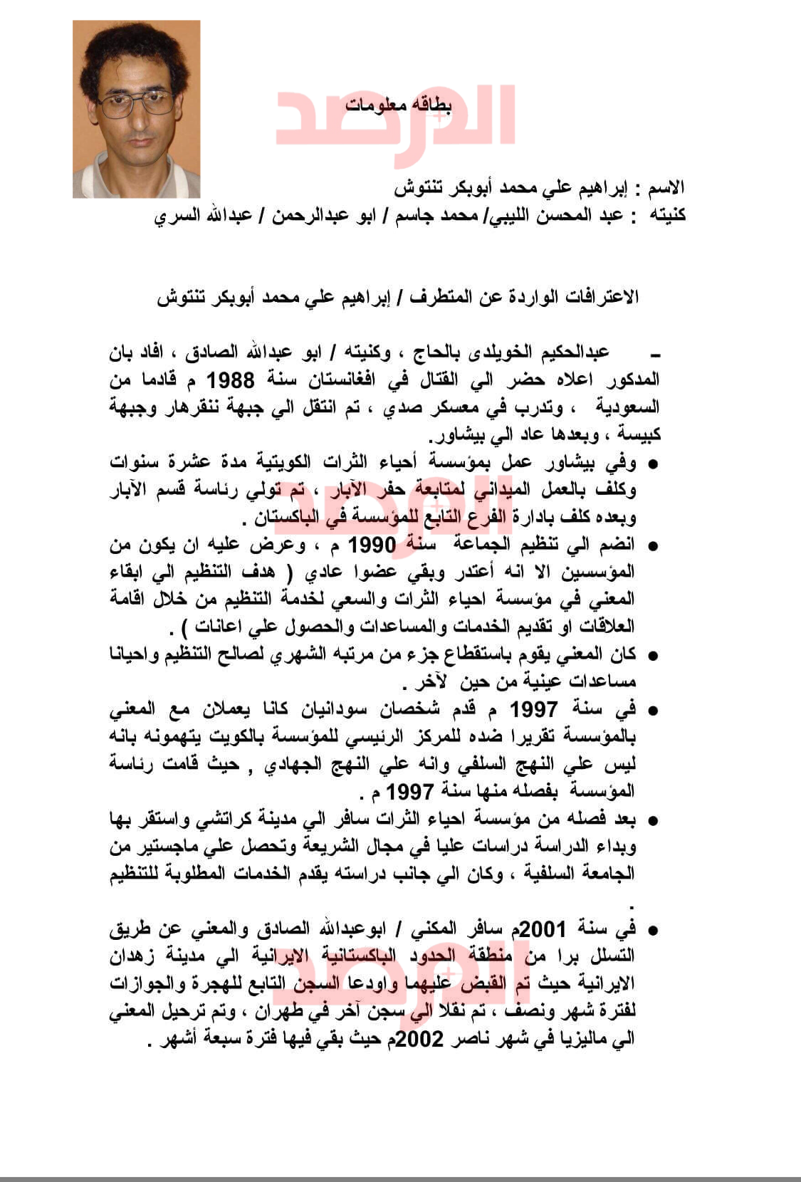 وفى مايلي تنشر صحيفة المرصد وثائق أرشيفية من جهاز الأمن الداخلي تُنشر ولأول مرة عن إعترافات أدلى بها قادة الجماعة الليبية المقاتلة ضد تنتوش بعد ترحيلهم إلى ليبيا من الخارج أو القبض عليهم فيها :